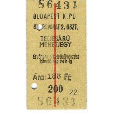 Railway Ticket, Hungary, MAV, Budapest K, Serial No 86431