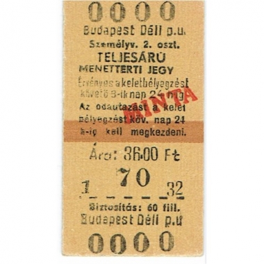 Railway Ticket, Hungary, MAV, Budapest Dell, Serial No 0000