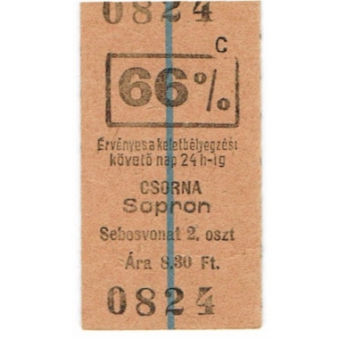 Railway Ticket, Hungary, MAV, Csorna, Serial No 0824