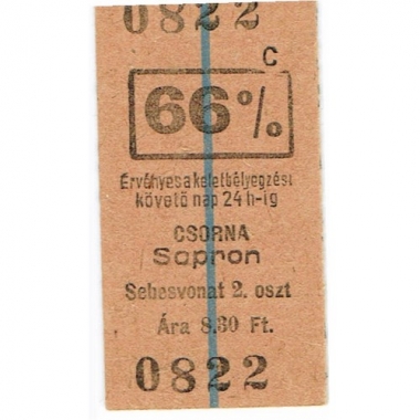 Railway Ticket, Hungary, MAV, Csorna, Serial No 0822