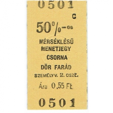 Railway Ticket, Hungary, MAV, Csorna, Serial No 0501