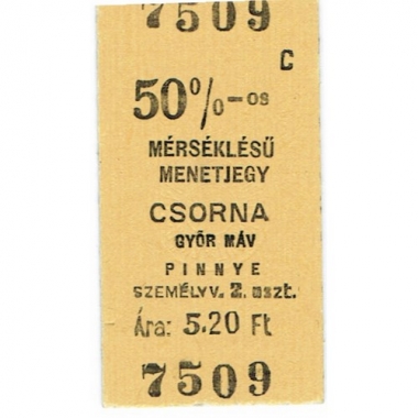 Railway Ticket, Hungary, MAV, Csorna, Serial No 7509