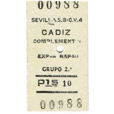 Railway Ticket, Spain, Renfe, Cadiz, Serial No 00988