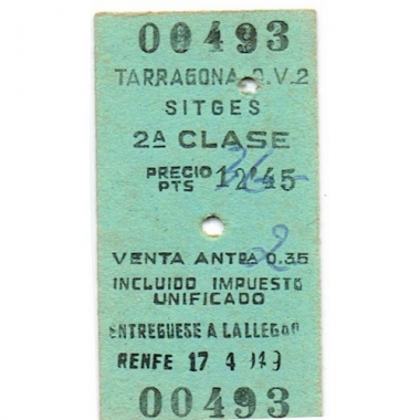Railway Ticket, Spain, Renfe, Tarragona - Sitges, Serial No 00493