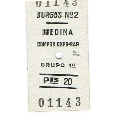 Railway Ticket, Spain, Renfe, Medina, Serial No 01143