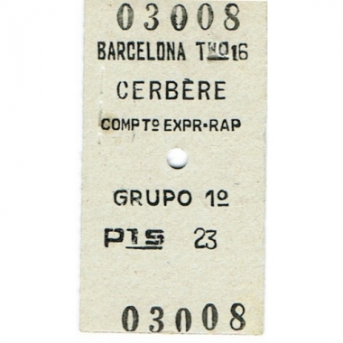 Railway Ticket, Spain, Renfe, Barcelona - Cerbere, Serial No 03008