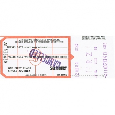 Railway Ticket, Zimbabwe, NRZ, Salisbury, Serial No 016882
