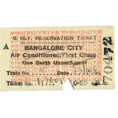 Railway Ticket, India, SR, Bangalore City, Serial No 70472