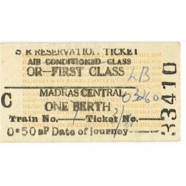 Railway Ticket, India, SR, Madras Central, Serial No 33410