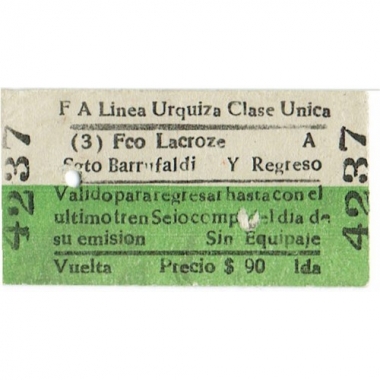 Railway Ticket, Argentina, FA Linea Urquiza, Frederico Lacroze, Serial No 4237