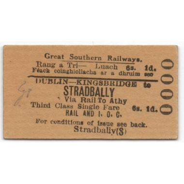 Railway Ticket, Republic of Ireland, Great Souther Railways, Dublin Kingsbridge - Stradbally, Serial No. 0000
