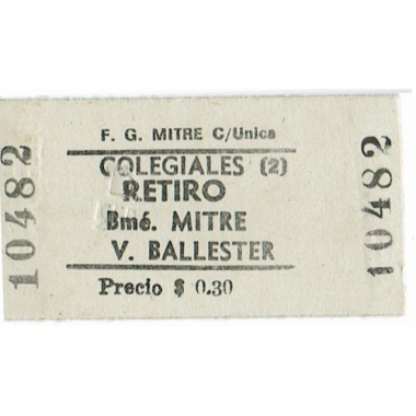 Railway Ticket, FCGM, Retiro - Villa Ballester, Serial No 10482