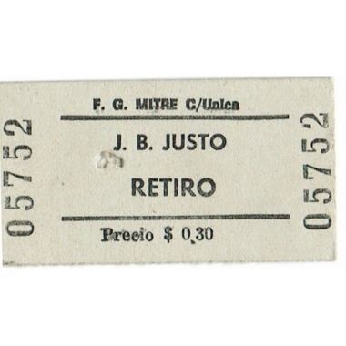 Railway Ticket, FCGM, Juan B Justo - Retiro, Serial No 05752