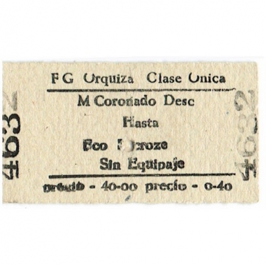 Railway Ticket, Argentina, FCGU, M Coronada - Fco Lacroze, Serial No 4632