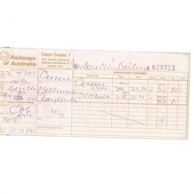 Railway Ticket, Australia, Railways of Australia, Crafers - Melbourne, 2 adults, Serial No 629713