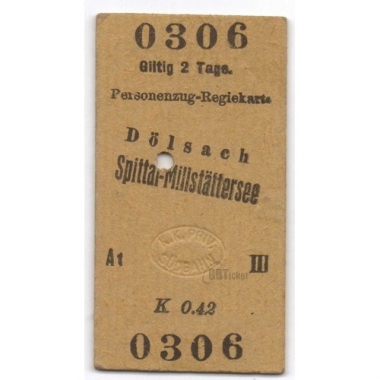 Railway Ticket, Austria, KK Priv Sudbahn, Dolsach - Spittal-Millstattersee, Serial No 0306