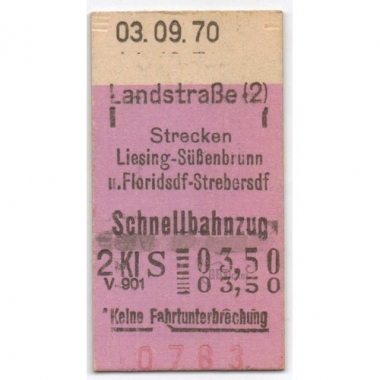 Railway Ticket, Austria, OBB, S-Bahn, Landstrasse - Liesing-Sussenbrunn, Serial No 0783
