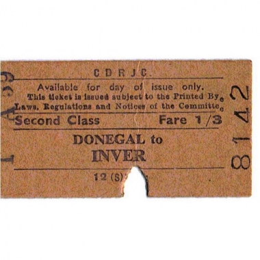Travel Ticket, Ireland, CDRJC, Donegal - Inver, Serial No 8142