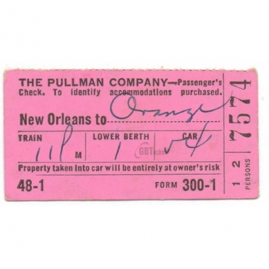 Railway Ticket, USA, The Pullman Company, New Orleans - Orange, Passenger's Check, Serial No 7574