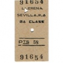 Railway Ticket, Spain, Renfe, Llerena - Sevilla, Serial No 91654