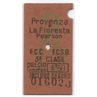 Railway Ticket, Spain, FCC, FCSB, Provenza - La Floresta, Serial No 01602
