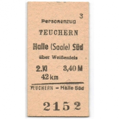 Railway Ticket, Germany, Teuchern - Halle (Saale) Süd, Serial No 2152