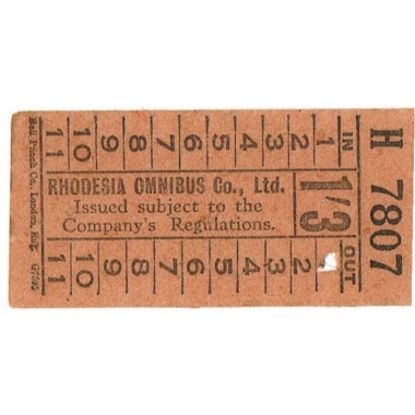 Bus Ticket, Zimbabwe, Rhodesia Omnibus Co. Ltd., Serial No 7807