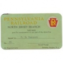 Railway Ticket, USA, Pennsylvania Railroad, North Jersey Branch, Serial No 25
