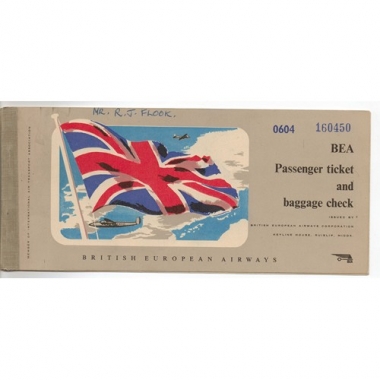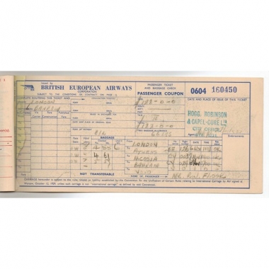 Air Ticket, BEA, London - Athens - Nicosia - Bahrain, Serial No 160454