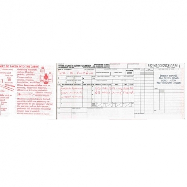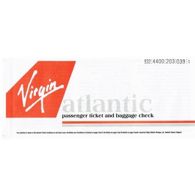 Air Ticket, Virgin Atlantic, London Gatwick - East Midlands, Serial No 203 039