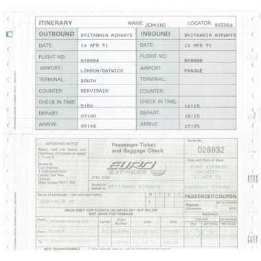 Air Travel, Pilgrim Air, Verona - Gatwick, Serial No 005341