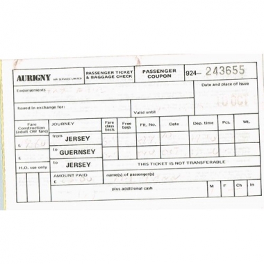 Air Travel, Aurigny Air Services, Jersey - Guernsey, Serial No 243655