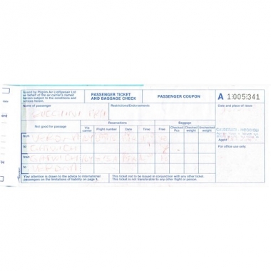 Air Travel, Pilgrim Air, Verona - Gatwick, Serial No 005341