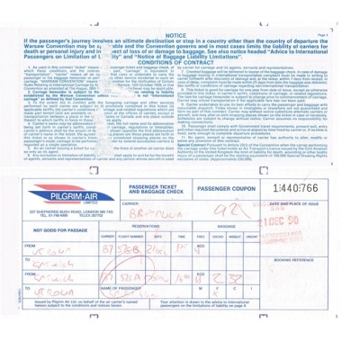 Air Ticket, Pilgrim Air, Verona - Gatwick, Serial No 440766