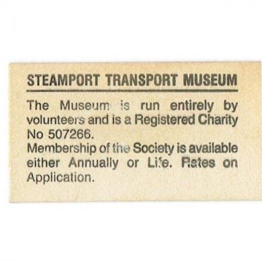 Admission Ticket, Steamport Transport Museum, Southport, OAP, Serial No 0525