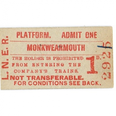 Platform Ticket, LNER, Monkwearmouth, 1d, Serial No 2925