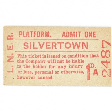 Platform Ticket, LNER, Silvertown, 1d, Serial No 2487