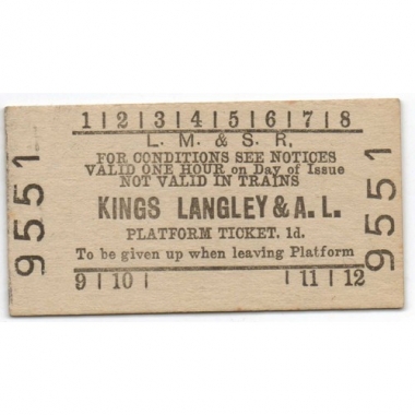 Platform Ticket, LM&SR, King's Langley & AL, 1d, Serial No. 9551