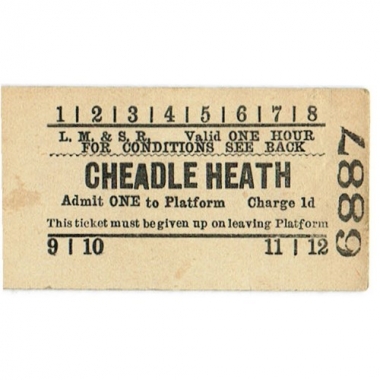Platform Ticket, LM&SR,Cheadle Heath, 1d, Serial No 6887