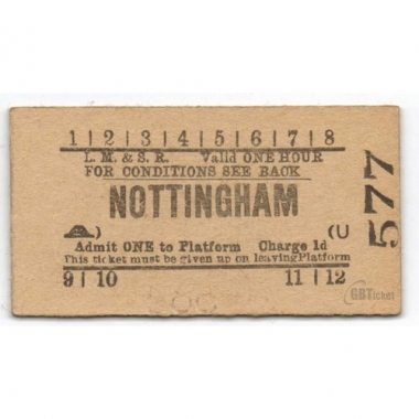 Platform Ticket, LM & SR, Nottingham, Serial No 577