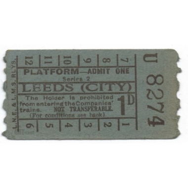 Platform Ticket, LNE & LMS Rlys, Leeds (City), 1d, Serial No U 8274