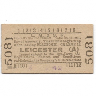 Platform Ticket, LM & SR, Leicester (A), Serial No 5081