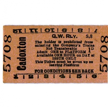 Platform Ticket, GWR, Cadoxton, 1d, Series 8, Serial No 5708
