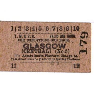 Platform Ticket, LM&SR, Glasgow (Central) (No.5), 1d, Serial No 179