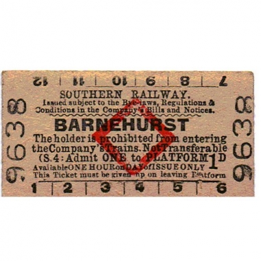 Platform Ticket, SR, Barnehurst, 1d, Serial no 9638