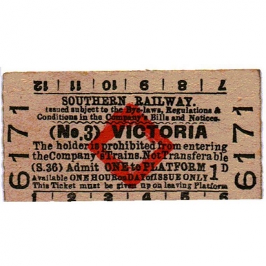 Platform Ticket, SR, Victoria (No.3), 1d, Serial no 6171