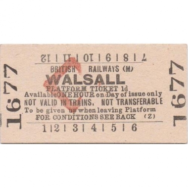 Platform Ticket, BR (M), Walsall, 1d, Serial No 1677