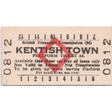 Platform Ticket, BTC (M), Kentish Town, 2d, Serial No 0812