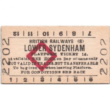 Platform Ticket, BR (S), Lower Sydenham, 1d, Serial No 2202