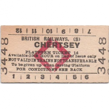 Platform Ticket, BR (S), Chertsey, 1d, Serial No 3448